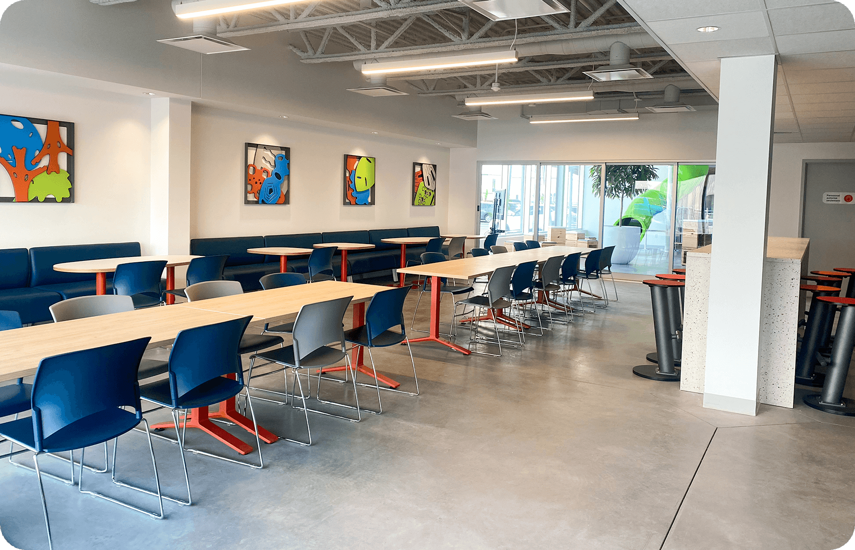 Salles de repas et de repos conçues pour se détendre et échanger avec les collègues.