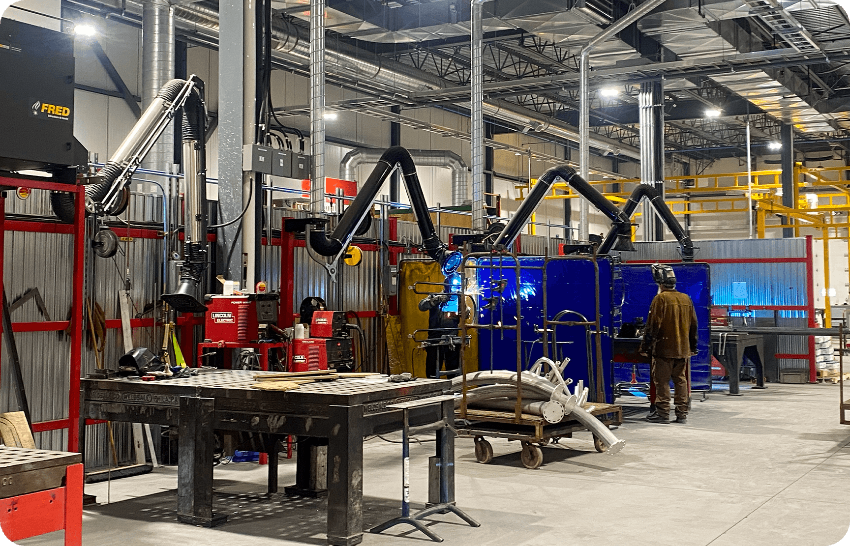 Fini les fumées! Notre système d’extraction des fumées de soudage avec filtration de l’air assure une meilleure qualité de l’air, pour un environnement plus respirable.
